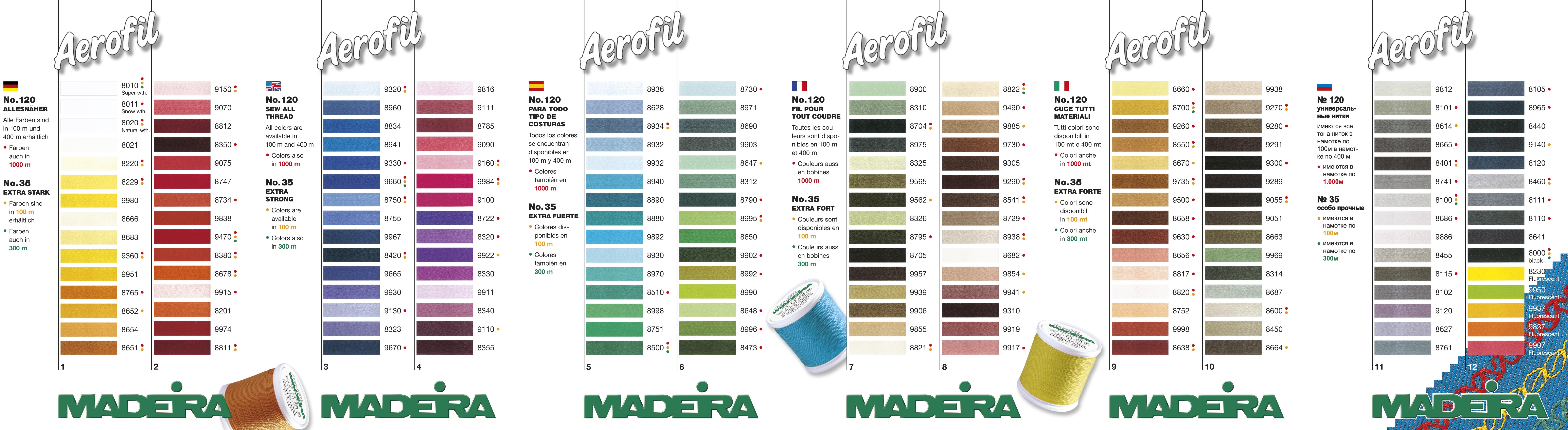 Široká nabídka barevných odstínů skloubená s vysoukou kvalitou a příjemnou cenou - to jsou kvalitní nitě Madeira Aerofil pro Vaše šití na šicím stroji.